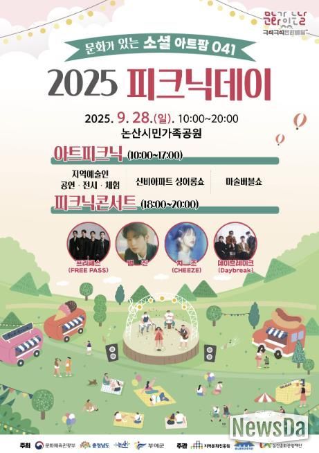 뉴스다 최광묵 기자 | (재)논산문화관광재단은 2025 문화가 있는 날 사업 일환으로 오는 9월 28일 논산 시민가족공원에서 ‘구석구석 문화배달’ 6회차를 개최한다.