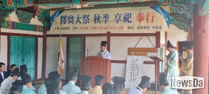 뉴스다 최광묵 기자 | 청도향교(전교 예광해)는 25일 청도군 화양읍에 위치한 청도향교 명륜당에서 향교 관계자, 유림 및 지역 인사 등 100여명이 참석한 가운데 추계 석전대제를 봉행했다.