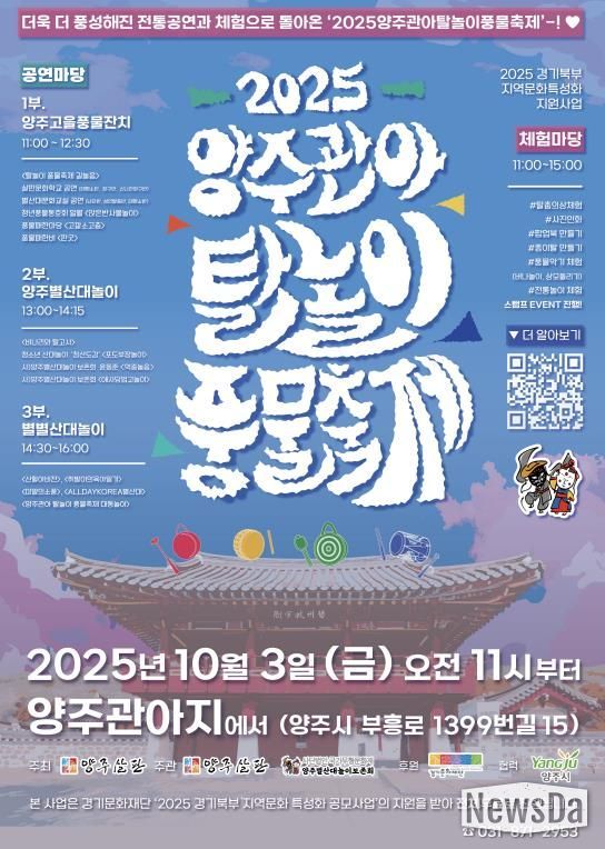 행사는 ▲생활예술단체 공연 ▲국가무형문화재 ‘양주별산대놀이’ ▲현대적 감각으로 재해석한 ‘별별산대놀이’ 등 3부로 진행된다.