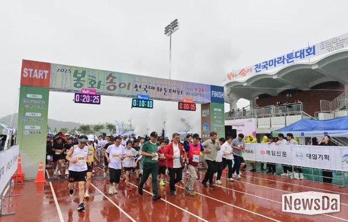 뉴스다 류대현 기자 | 봉화군이 지난 28일 개최한 ‘2025 봉화송이 전국마라톤대회’가 봉화공설운동장 일원에서 2천여 명의 참가자와 가족, 자원봉사자 등이 참석해 성황리에 종료됐다.