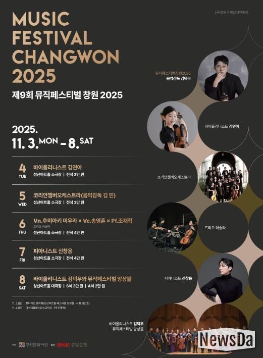 뉴스다 최광묵 기자 | 올해 축제는 그동안 ‘창원국제실내악축제’라는 이름으로 이어져 온 전통을 계승하면서, 명칭을 ‘뮤직페스티벌창원2025’로 변경해 프로그램 범위를 확대했다.