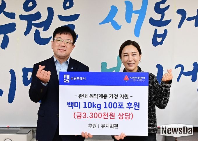뉴스다 최광묵 기자 | 유치회관이 9월 30일 “취약계층 가정에 전달해 달라”며 수원특례시에 백미 100포를 기부했다. 수원시는 4개 구에 25가구씩, 총 100가구에 백미를 배분할 예정이다.