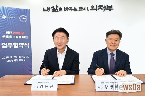 뉴스다 최광묵 기자 | 의정부시는 9월 29일 (사)한국대드론산업협회와 ‘첨단 방위산업 생태계 조성을 위한 업무협약’을 체결했다.