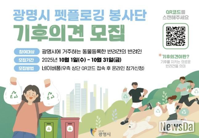 한편, 광명시는 올해 1기를 시작으로 봉사단 규모를 매년 확대해 생활 속 기후실천 문화를 확산하고, 환경정화와 반려문화가 결합된 시민 참여형 모델을 정착시킬 계획이다.