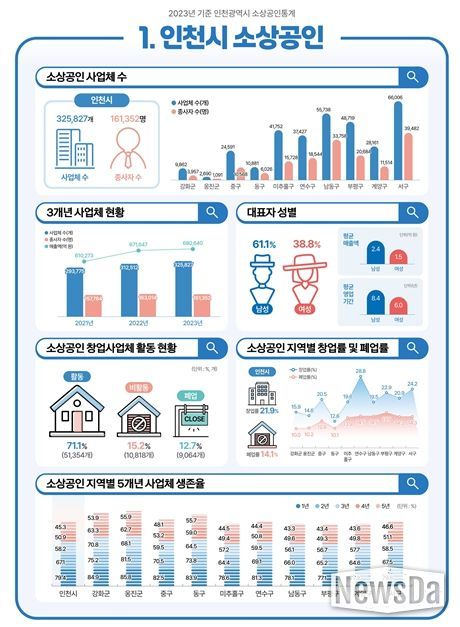 뉴스다 최광묵 기자 | 인천광역시는 '2023년 기준 인천 소상공인통계'결과를 인천시 누리집 인천데이터포털을 통해 공표했다고 밝혔다.