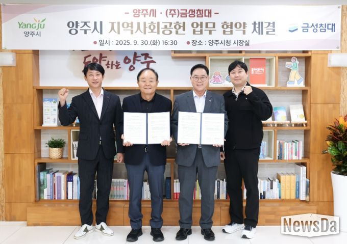 뉴스다 최광묵 기자 | 양주시가 지난 30일 시청 시장실에서 ㈜금성침대와 지역사회공헌 업무 협약을 체결했다.