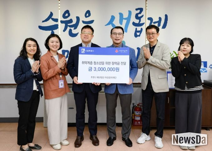 뉴스다 최광묵 기자 | 아경장학재단이 “취약계층 중·고등학생에게 전달해 달라”며 수원특례시에 300만 원을 기탁했다.