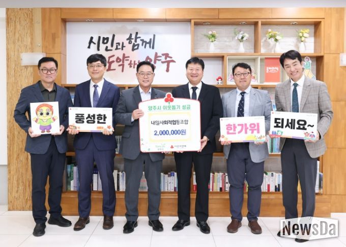 뉴스다 최광묵 기자 | 양주시가 지난 30일 내일사회적협동조합(이사장 송영진)로부터 성금 200만원을 기탁받았다.