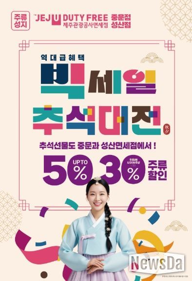 뉴스다 최광묵 기자 | 제주관광공사는 추석을 맞아 중문면세점과 성산면세점에서 10월 한 달간 대대적인 세일을 진행하는 등 풍성한 혜택을 제공한다고 1일 밝혔다.