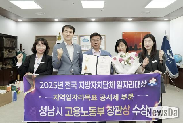 뉴스다 최광묵 기자 | 성남시는 고용노동부 주관 ‘2025년 전국 지방자치단체 일자리대상’에서 지역일자리목표 공시제 부문 ‘고용노동부 장관상’을 수상했다고 2일 밝혔다.