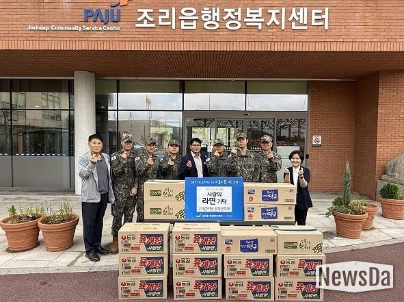 뉴스다 최광묵 기자 | 파주시 조리읍은 지난 29일, 제2기갑여단 본부근무대가 추석을 맞아 지역 내 어려운 이웃을 돕기 위해 컵라면 등 즉석식품 16상자를 기탁했다고 밝혔다.