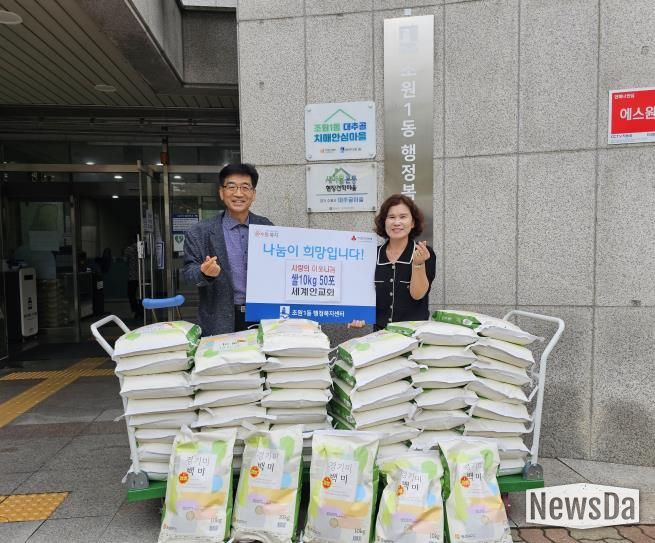 뉴스다 최광묵 기자 | 수원시 장안구 조원1동 대한예수교장로회 세계인교회는 지난 1일, 추석 명절을 맞이하여 조원1동 행정복지센터에 백미10kg 50포를 전달했다.