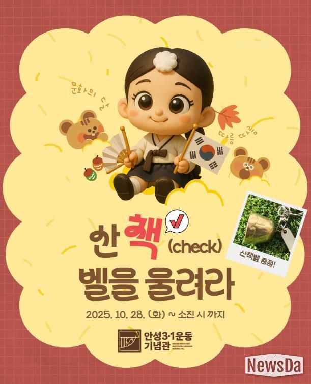 뉴스다 최광묵 기자 | 안성3.1운동기념관은 10월 문화의 달을 맞이하여 10월 28일(화)부터 특별 체험활동 “산책(Check) 벨을 울려라”를 진행한다.