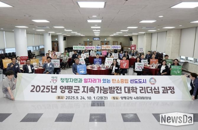 뉴스다 최광묵 기자 | 양평군은 지난 9월 24일과 10월 1일 양일간 군청 대회의실에서 ‘2025 양평군 지속가능발전대학 리더십 과정’을 성공적으로 마무리했다고 밝혔다.
