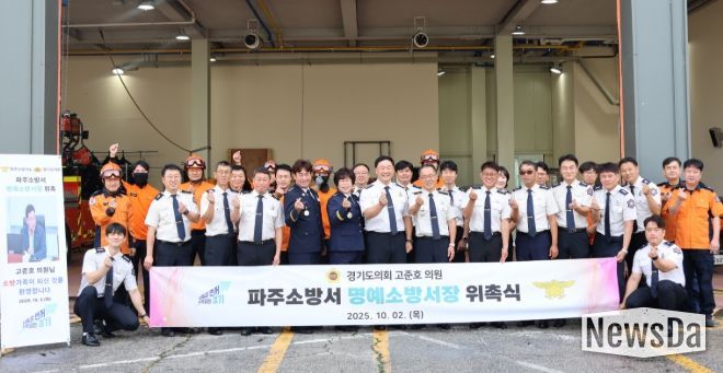 뉴스다 최광묵 기자 | 파주소방서는 10월 2일 경기도의회 보건복지위원회 부위원장 고준호 의원을 1일 명예소방서장으로 위촉했다고 밝혔다.