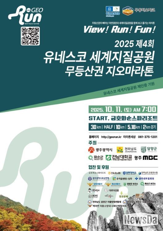 뉴스다 류대현 기자 | 전라남도는 ‘제4회 무등산권 지오마라톤 대회’가 슬로건은 ‘무등산권 유네스코 세계지질공원 재인증 기원’을 주제로 오는 11일 금호화순스파리조트 주차장에서 개최된다고 밝혔다.