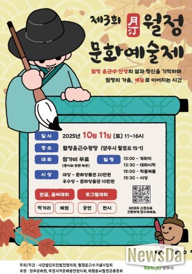 행사 관계자는 “양주 월정 문화예술제는 단순한 행사를 넘어 시민들이 지역의 역사와 문화를 체감하고 자긍심을 가질 수 있는 소중한 기회”라며, “많은 시민들이 함께해 가을 정취 속에서 문화와 예술을 즐기시길 바란다”고 전했다.
