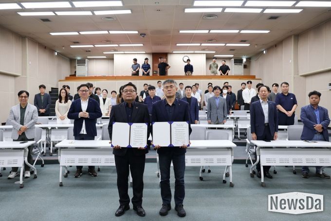 뉴스다 최광묵 기자 | 용인도시공사는 2025년 10월 2일, 본사 3층 대회의실에서 노사 대표 공동‘성희롱·성폭력 근절 선언식’을 개최했다.