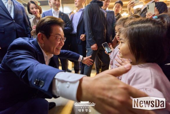 뉴스다 최광묵 기자 | 이재명 대통령은 강화평화전망대에 이어 인천 강화군 소재의 아동양육시설인 계명원을 찾았다.