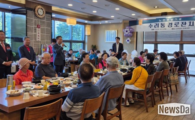 뉴스다 최광묵 기자 | 군포시 수리동 주민자치회(회장 고진해)는 제29회 노인의 날을 맞아 지난 10월 2일 수리동 어르신들을 대상으로 경로잔치를 개최했다. 이번 행사는 하은호 군포시장, 이학영 국회부의장 등 여러 내빈과 수리동 직능단체장들이 어르신 100여 명과 뜻깊은 자리를 함께했다.