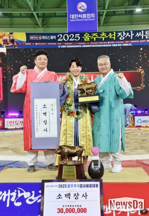 뉴스다 류대현 기자 | 증평군청 인삼씨름단(감독 연승철, 코치 서수일) 소속 이완수 선수가 울산광역시 울주군 울주종합체육관에서 열린 ‘위더스제약 2025 울주추석장사씨름대회’에서 소백장사(72kg이하) 타이틀을 거머줬다.
