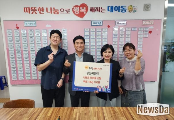 한성운 ㈜성진씨앤티 대표는 “대야동의 한 기업으로서 지역사회에 도움이 되고 싶어 기부를 결심했다”라며 “이번에 전달된 쌀이 추석을 앞두고 어려운 이웃들에게 작은 힘이 되길 바란다”라고 말했다.