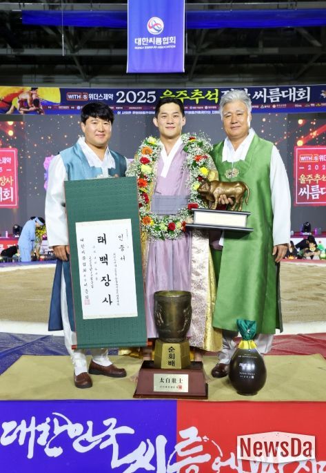 뉴스다 류대현 기자 | 울주군청 해뜨미씨름단 소속 노범수 선수가 5일 울산 울주군 울주종합체육센터에서 열린 ‘위더스제약 2025 울주추석장사씨름대회’에서 태백장사에 등극했다.
