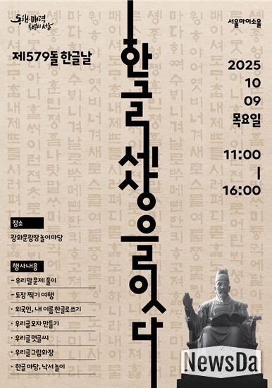 뉴스다 최광묵 기자 | 서울시는 제579돌 한글날을 맞아 10월 9일 오전 11시부터 오후 4시까지 광화문광장 세종대왕상 앞에서 한글날 기념 시민참여 행사를 진행한다.
