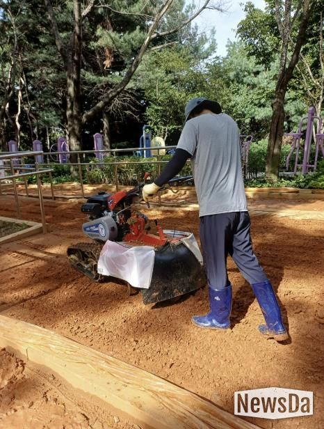 다른 1곳인 구미동 공공공지 내 750m 길이의 황톳길은 로터리 기기를 내년도에 추가 구매한 뒤 흙 뒤집기 작업을 한다.