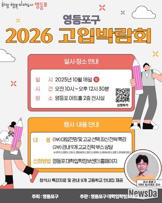 아울러 오는 11월 22일 영등포 아트홀에서는 ‘2026 대입 정시 지원전략 설명회’를 개최할 예정이다. 행사와 관련한 자세한 사항은 ‘영등포 대학입학센터’ 또는 구청 미래교육과로 문의하면 된다.