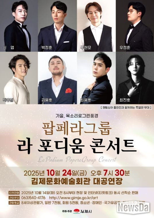 뉴스다 최광묵 기자 | 깊어 가는 가을, 특별한 음악의 향연 팝페라 그룹'라 포디움 콘서트'가 오는 24일 오후 7시 30분 김제문화예술회관 대공연장에서 펼쳐진다.
