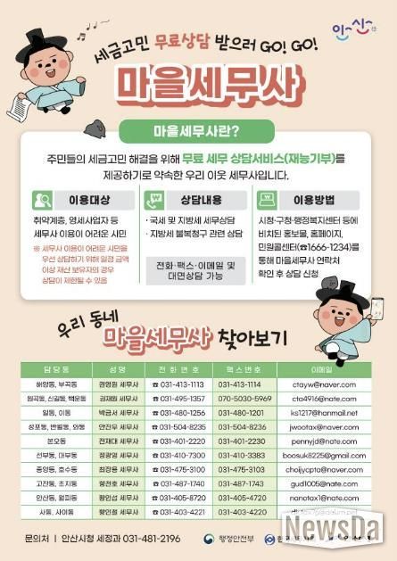 뉴스다 최광묵 기자 | 안산시는 올해 말까지 시민들에게 전문적인 세무 상담을 제공하기 위한 ‘제5기 마을세무사’ 제도를 운영한다고 10일 밝혔다.