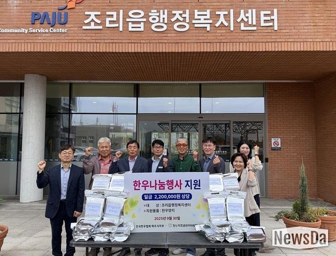뉴스다 최광묵 기자 | 파주시 조리읍은 지난 9월 30일 전국한우협회 파주시지부로부터 추석 명절을 맞아 220만 원 상당의 한우 양지 43kg을 기탁 받았다고 전했다.