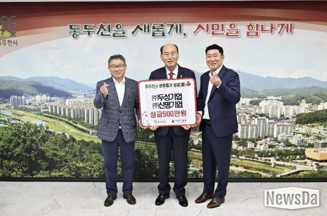 뉴스다 최광묵 기자 | ㈜두성기업과 ㈜신명기업은 추석 명절을 맞아 지난 10월 1일 동두천시청을 방문, 저소득 가정을 지원하기 위해 각각 250만 원씩 총 500만 원을 기탁했다.