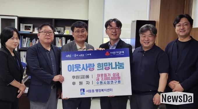 뉴스다 최광묵 기자 | 수원시정연구원과 수원시정연구원 사우회가 지난 10월 2일, 추석을 맞아 나눔을 실천하고자 성금 200만원을 서둔동 행정복지센터에 기탁했다. 이번 기탁금은 수원시정연구원장과 수원시정연구원 사우회에서 각 100만원을 모아 마련한 것이다.