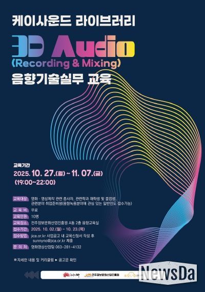 교육은 약 2주간 전주정보문화산업진흥원에서 진행되며, 영화·영상 제작 관계자와 음향 관련 재학생·졸업생, 관련 분야 취업준비생 등 누구나 신청할 수 있다.