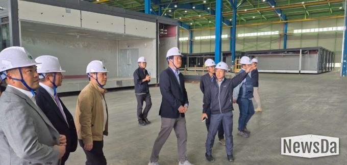강범석 서구청장은 이번 방문을 통해 모듈러 제작 과정을 견학하고 실제 제작된 검단구 임시청사 모듈러의 품질을 직접 확인했다.