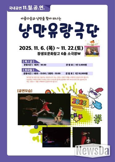 뉴스다 최광묵 기자 | 고래문화재단(이사장 서동욱)은 11월 6일부터 22일까지 어린이를 위한 상설공연으로 ‘낭만 유랑극단’을 총 12회에 걸쳐 무대에 오른다고 밝혔다.