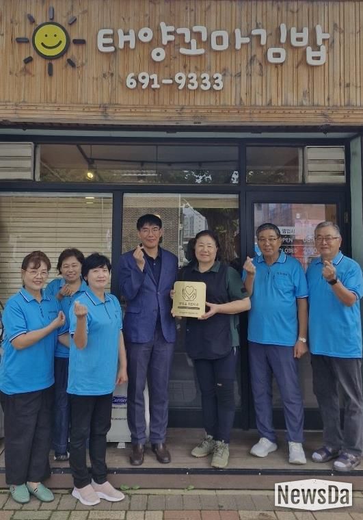 뉴스다 최광묵 기자 | 평택시 팽성읍 지역사회보장협의체는 지난 2일, 나눔 활동에 동참한 ‘태양꼬마김밥’에 ‘착한 이웃’ 현판을 전달했다.