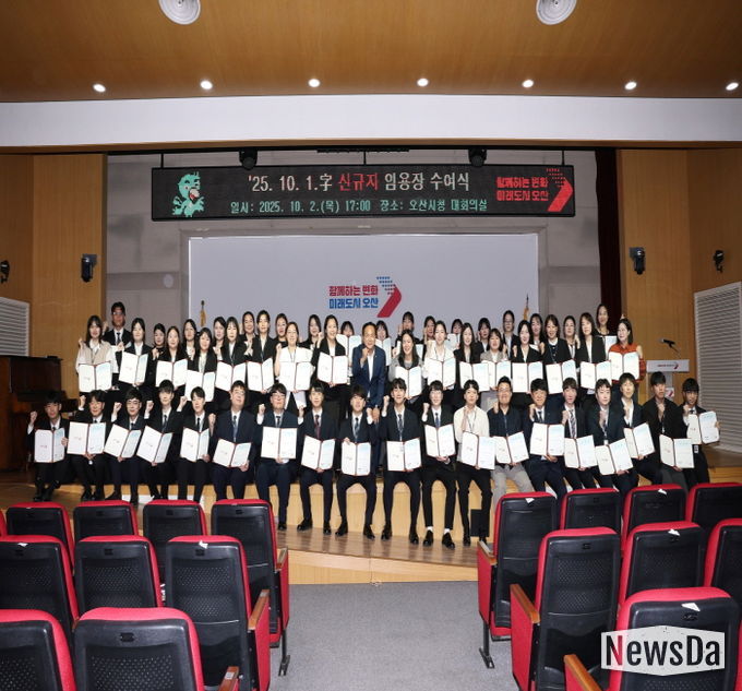 뉴스다 최광묵 기자 | 오산시는 지난 10월 2일 오산시청 대회의실에서 2025년 신규 임용 공직자 52명을 대상으로 임용장 수여식을 개최했다고 밝혔다.