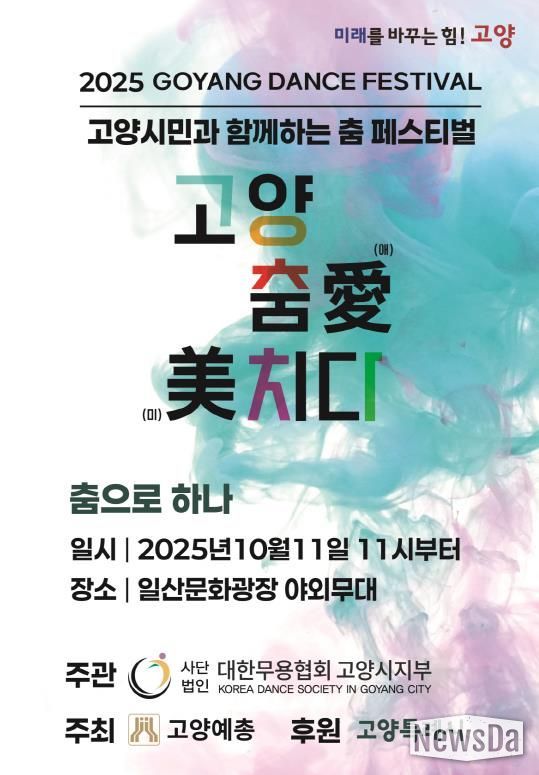 뉴스다 최광묵 기자 | 고양특례시가 후원하고 (사)한국예술문화단체총연합회 고양지회가 주최하며 (사)대한무용협회 고양지부에서 주관하는‘제29회 고양 춤 페스티벌’이 오는 11일 일산문화공원 야외무대에서 열린다.