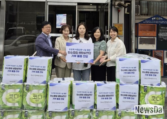 푸른과천환경센터 탄소중립 생활실천단은 지역 내에서 수거한 우유갑을 재활용해 화장지로 교환하는 자원 순환 활동을 펼치고 있으며, 이번 기부를 통해 총 24롤 45묶음의 화장지를 별양동주민센터에 전달했다.
