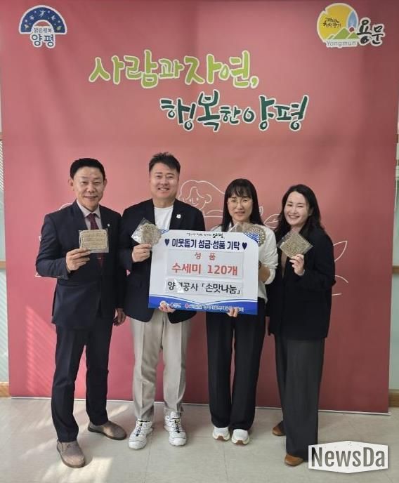 뉴스다 최광묵 기자 | 양평군 용문면은 지난 1일 양평공사 ‘손맛나눔’에서 직접 제작한 삼베 수세미 120개를 기탁했다고 밝혔다.
