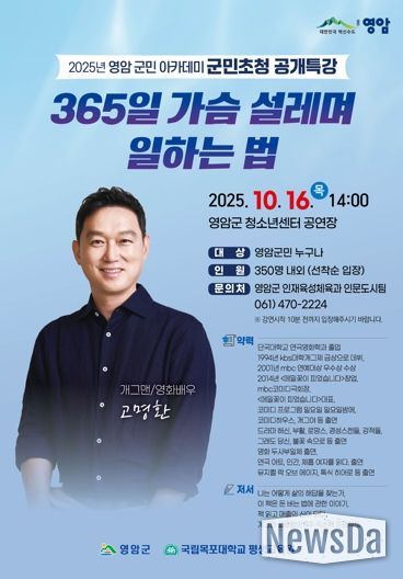 뉴스다 최광묵 기자 | 영암군이 10월16일 오후 2시 청소년센터에 개그맨이자 방송인인 고명환 씨를 초청해 군민아카데미 제5회 공개특강을 개최한다.