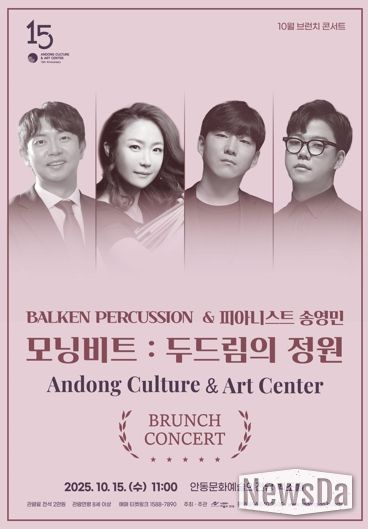 뉴스다 최광묵 기자 | 안동문화예술의전당은 매월 둘째 주 수요일, 클래식 애호가들을 위한 감성 콘서트 시리즈인 ‘브런치 콘서트’를 꾸준히 선보이며 지역 문화 활성화에 앞장서고 있다. 10월의 브런치 콘서트, '모닝비트: 두드림'이 오는 10월 15일 오전 11시, 안동문화예술의전당 백조홀에서 열린다.