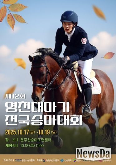 뉴스다 류대현 기자 | 영천시는 결실의 계절 10월을 맞아, 오는 17일부터 19일까지 3일간 운주산 승마조련센터에서 ‘제12회 영천대마기 전국승마대회’를 개최한다.