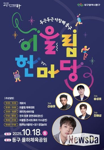 대구 동구청은 오는 18일, 율하체육공원 일원에서 2025년 어울림한마당 ‘두두다동’을 성대하게 개최한다고 밝혔다.