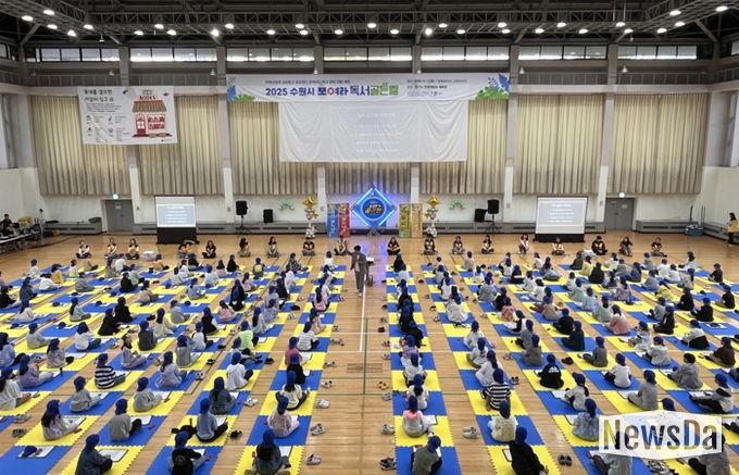 뉴스다 최광묵 기자 | 초등학생 500명이 참여한 ‘2025 수원 독서골든벨’ 대회가 11일 경기도인재개발원 체육관에서 열렸다.