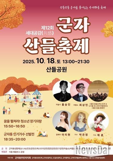 뉴스다 최광묵 기자 | 시흥시 군자동 주민자치회는 오는 10월 18일 오후 1시부터 거모동 산들공원에서 ‘제12회 세대공감(共感) 군자 산들축제’를 개최한다.