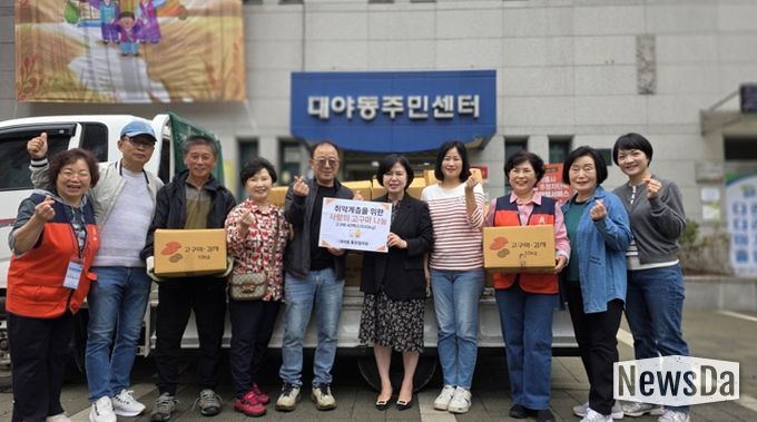 뉴스다 최광묵 기자 | 시흥시 대야동 통장협의회는 지난 10월 10일 대야동 주민센터에서 지역 취약계층을 위한 고구마 40상자(500kg) 전달식을 열었다. 이번 나눔은 지역 사회 돌봄의 공백을 줄이고, 따뜻한 명절 분위기를 어려운 이웃들과 나누기 위해 마련됐다.